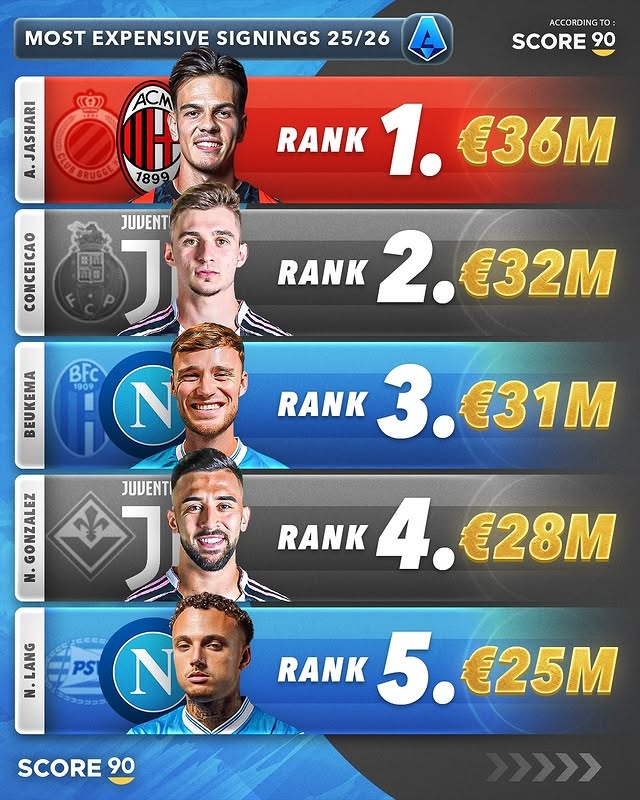 华体会官网-今夏意甲TOP5引援:米兰3600万欧签亚沙里居首 尤文&那不勒斯2席
